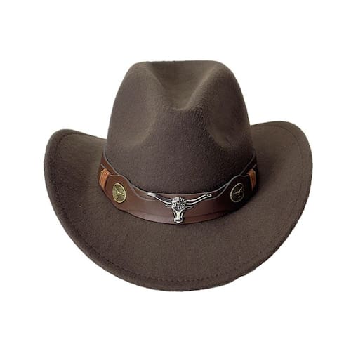 Material: pele de veado Tamanho: tamanho único Peso: 120 g Design elegante de cabeça de touro: o chapéu apresenta um ornamento de metal exclusivo com cabeça de touro e um cinto de couro, tornando-o perfeito para roupas com temas ocidentais e cosplay. Material de feltro durável: feito de material de feltro de alta qualidade, este chapéu de cowboy é leve e durável, ideal para aventuras ao ar livre. Versátil para todas as estações: adequado para primavera, verão e outono, oferecendo estilo e proteção solar para atividades ao ar livre. Design unissex: com um design único para todos, este chapéu é perfeito para homens e mulheres, cabendo confortavelmente na maioria dos tamanhos de cabeça. Perfeito para eventos ocidentais: ótimo para festas temáticas de cowboys, eventos à fantasia e reuniões ao ar livre, adicionando um toque ousado ao seu traje.