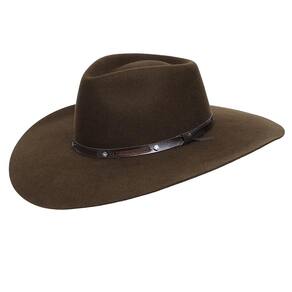 Chapéu Pralana modelo 5X Campo II fabricado em feltro na cor Marrom, possui copa de 10,5cm e aba de 10cm, bandinha de material sintético e carneira de elástico.