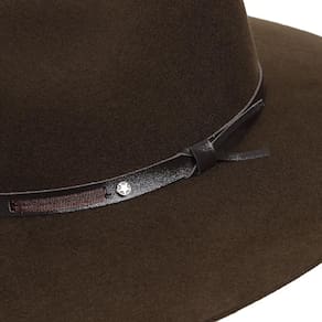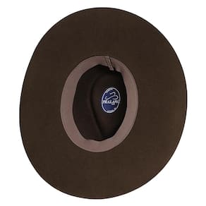 Chapéu Pralana modelo 5X Campo II fabricado em feltro na cor Marrom, possui copa de 10,5cm e aba de 10cm, bandinha de material sintético e carneira de elástico.