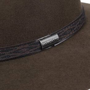 Chapéu Marcatto fabricado em Feltro na cor Marrom, possui copa de 10,5cm e aba de 9cm, bandinha de material sintético com nylon e boton e carneira de elástico.