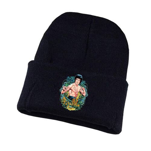 Chapéu de malha Bruces Lees Anime Winter Warm unissex 20x28cm
