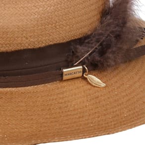 O chapéu Marcatto é um acessório de moda elegante e sofisticado, confeccionado com palha natural de alta qualidade e acabamento impecável. Com um estilo clássico de chapéu muladeiro de aba 9cm e copa acentada de 10cm, ele apresenta uma pena de pássaro cuidadosamente escolhida na lateral e uma bandinha de material sintético, que adiciona um toque de elegância ao seu visual. Além de ser um item de moda atemporal, o chapéu Marcatto também é altamente funcional, protegendo seu rosto e cabeça dos raios solares e vento. Ideal para eventos ao ar livre, passeios no campo ou para completar um traje informal, este chapéu é uma escolha versátil e elegante para qualquer ocasião.
