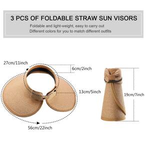 - Conteúdo da embalagem: um total de 3 peças de chapéu de palha dobrável na embalagem, 3 cores diferentes para você, incluindo preto, cáqui e bege, você pode escolher uma diferente para combinar com suas roupas diárias; o chapéu pode enrugar quando desdobrado, as rugas serão reduzidas após algumas horas de desdobramento