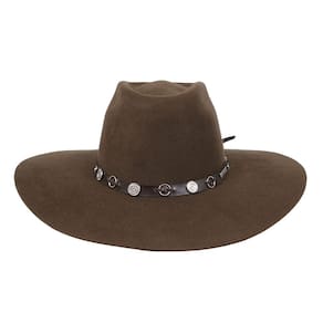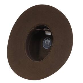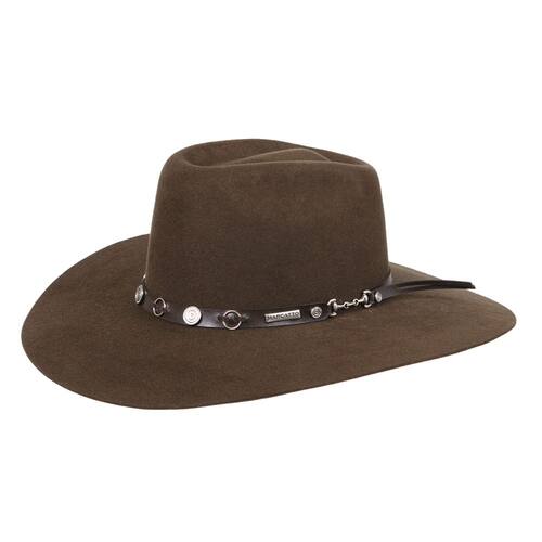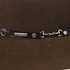 Um Chapéu da marca Marcatto modelo 20X Muladeiro, este fabricado em Feltro de alta qualidade na cor Tabaco, o mesmo possui copa de 12,5cm e aba de 9,5cm, bandinha de material sintético com botons e argolas de metal e carneira de tecido costurado com elastico acoplado na parte de trás da copa.