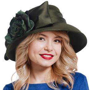 FORBUSITE Chapéus de festa femininos de feltro de lã para outono e inverno chapéus de igreja anos 1920, 1950 e 60, Laço verde - Tipo de forma do chapéu: chapéu bucket - Usos recomendados para o produto: interior/exterior - Estilo: Cloche - Tema: Feriado - Tipo de padrão: sólido - Instruções de cuidados: lavar apenas à mão - Tipo de ajuste: Ajustável