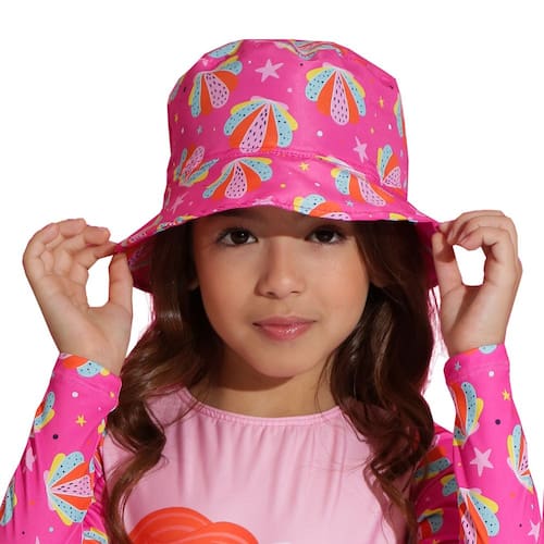 O chapéu infantil em microfibra com estampa de conchas pink Everly é perfeito para crianças a partir de 4 anos. Com proteção solar FPU 50+, é um charme para aqueles momentos ao sol, com toda a proteção e estilo.