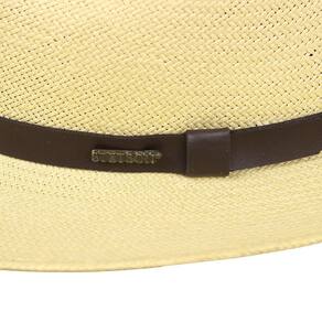 Chapéu Casual da marca Stetson, fabricado em palha com aba de 6,5cm e copa de 11,5cm, carneira de elastico que proporciona melhor conforto e ajuste, a banda que envolve a copa é fabricada em fita de debrum marrom dando um toque discreto ao modelo.
