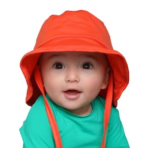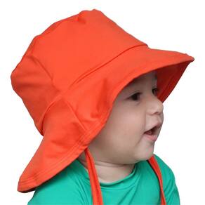 O chapéu praia bebê e infantil laranja pitanga com proteção UV 50+ tem design inteligente pois possui aba traseira maior, protegendo assim o pescoço do bebê e aba frontal menor, permitindo uma visibilidade maior, além de cordinha para evitar que o bebê tire ou o saia em momentos de vento. É confeccionado em poliamida super macio, não esquenta, seca rápido e mantém a temperatura corporal. Por ser de tecido super elástico, ele serve para bebês de 6 meses até crianças maiores.