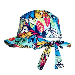 O Chapéu Viseira Onça Tropical Tip Top possui laço atrás e aba larga para maior proteção. É o chapéu ideal para as pequenas não perderem nenhum momento das brincadeiras na praia e piscina. Possui proteção solar FPS 50+ permanente.