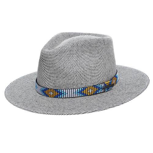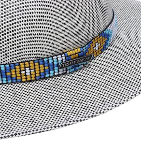 Chapéu Texas Diamond modelo Social bicolor fabricado em Fibra Têxtil, possui aba de 7cm de copa social de 10cm, bandinha de nylon com boton de metal e carneira de elástico.