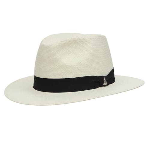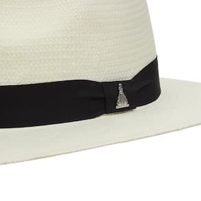 Chapéu Marcatto modelo Social fabricado em Fibra de Celulose na cor Marfim, possui copa de 10cm e aba de 6,5cm, bandinha de fita de nylon com boton de Nossa Senhora Aparecida e carneira de elástico.