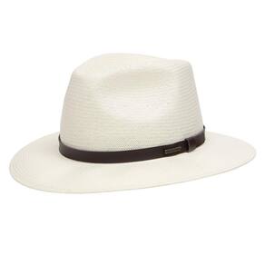 Chapéu Stetson modelo Social fabricado em Fibra de Celulose na cor Marfim, possui aba de 7cm e copa de 10,5cm, bandinha de fita de material sintético com boton e carneira de elástico.