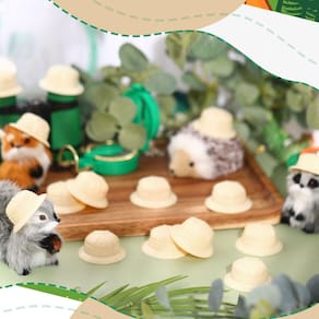 - Material de qualidade: esses chapéus de explorador em miniatura são feitos de material plástico de qualidade, robustos e leves; esses minichapéus de explorador bege são feitos na escala de chapéus de safári reais, realistas e fofos, adequados para decorações de aniversário de safári infantis