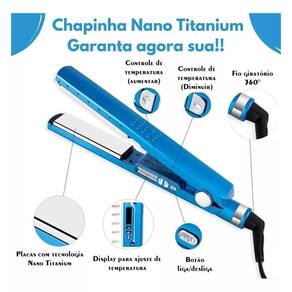 Chapinha De Cabelo 230 Graus - Bivolt E Estilosa Tenha cabelos lisos e brilhantes em instantes com a chapinha para cabelo nano titanium, ela tem tecnologia avançada que proporciona aquecimento rápido e uniforme, garantindo resultados perfeitos. Peça agora a sua Itens inclusos: - 1 prancha de cabelo Características: - placas de titânio - regulador de temperatura 300of - 450of 148oc - 230oc - cabo giratório 360o - aquece rapidamente - para qualquer tipo de cabelo Medidas e peso: c-30cm l-4cm a-4cm cabo-1.20m - 338g Marca: Não Informado