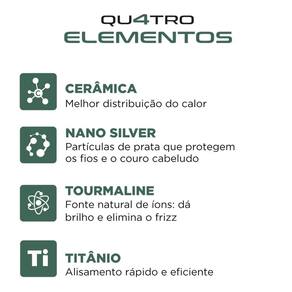 Titânio: acelera o processo de alisamento e reduz o frizz, mantendo a hidratação natural dos cabelos.