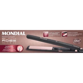 Chapinha/prancha de cabelos black rose p-27 bivolt mondial Características:- marca: mondial- modelo: p-27Especificações:- cor: preto/rose- chapas flutuantes- temperatura até 220ºc- cabo de energia giratório.- alisa, modela e elimina o frizz- tecnologia protect care, preserva a saúde dos fios através do condicionamento iônico e aquecimento controlado- íons: quando termo ativado, proporciona brilho e maciez aos cabelos- cerâmica: mantém a temperatura constante, facilitando o alisamento e protegendo os fios- trava de segurança- voltagem: bivoltConteúdo da embalagem:- chapinha- manual de instruçõesINMETRO OCP-0040