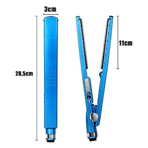 Prancha com design moderno, placas em titânio ideal para processos químicos. Suportam temperaturas muito altas e ajudam a manter a umidade natural do cabelo e proporcionar mais brilho. Possui botão para regulagem para ajustar temperatura da prancha.