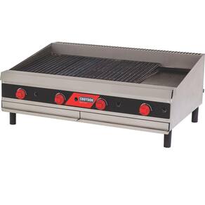 Sua estrutura é confeccionada em aço inoxidável, proporcionando mais durabilidade ao produto. Conta com uma área útil de 1m e grelhas fabricadas em ferro fundido para maior resistência, além de pedra cerâmica para melhor distribuição de calor. Possui um design com grelhas inclinadas, dessa forma a gordura proveniente do uso poderá escorrer facilmente para os reservatórios, evitando que sejam queimadas e contamine o sabor dos alimentos. Também acompanha uma chapa bifeteira, podendo substituir uma das grelhas.