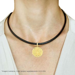 Desenvolvida com detalhes minimalistas e textura ao fundo, a medalha foi elaborada com acabamento refinado e revestimento em Ouro, garantindo beleza e sofisticação à essa joia.