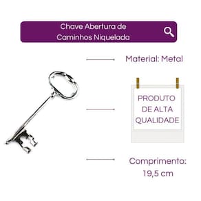 Chave Abertura de Caminhos Prateada 19,50 cm em Metal Esta Chave serve para abrir caminhos, atrair energias positivas para sua vida e também trazer mais proteção espiritual para sua vida e contra invejas. Tem o poder de transmutar energias. Descrição Conteúdo da embalagem: uma chave. Dimensões aproximadas do produto: Largura total: 5,50 cm Comprimento total: 19,50 cm Peso aproximado: 100 g Material: Metal Tire todas as suas Dúvidas antes de concluir a compra. Iremos responder o mais breve possível. Embalagem de Envio: Caixa de papelão ondulado, plástico bolha, conforme necessidade do produto. Ótima resistência e durabilidade. Respostas das dúvidas mais frequentes na ordem: R1: Já realizamos milhares de entregas em todo o Brasil, somos especialistas no que fazemos. R2: Assim que seu pedido for despachado, esta plataforma envia para você o código de rastreamento. R3: Enviamos o produto 100% inspecionado e conferido em nosso checkout e são embalados em embalagem de papelão e plástico bolha. R4: O tempo de entrega irá depender totalmente do seu CEP, todos os nossos produtos saem de Capital. R5: Iremos despachar o seu produto o mais rápido possível, assim que for confirmado pela plataforma, enviamos em até 24h. R6: Nós queremos a sua satisfação, qualquer problema iremos te auxiliar em nossos canais de comunicações Marca: Não Informado Ean: 7890003948774