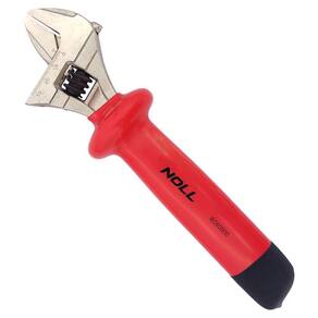 A Chave Ajustavél com Isolamento 1000v VDE 10'' 594,0002 - Noll, possui cabo isolado para 1.000V, testado individualmente e aba de proteção que oferece melhor manuseio. Atende a norma internacional IEC 60900. Indicada para fixar ou soltar porcas e parafusos sextavados. Ideal para atividades em áreas de risco e energizadas.