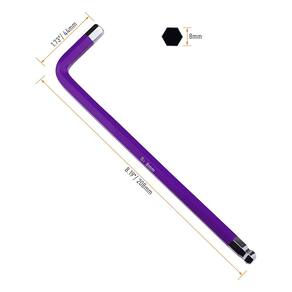 Material Brocas de aço S2 temperadas e tratadas termicamente, a dureza chegou a 58-60 HRC, reduzindo o desgaste. Aplicação Para remover e instalar parafusos de encaixe encontrados na barra de toalha, maçaneta da porta, montagem de móveis, equipamentos, etc. -?Tamanho e embalagem?Ponta esférica de 8 mm, comprimento total de 8,19" (208 mm), o pacote inclui 4 peças. -?Material?Feito de material de aço S2 para máxima durabilidade. Com cromo brilhante e tratamento de jateamento para anticorrosão e resistência ao desgaste. -?A ponta esférica?permite um ângulo de entrada de até 25 graus, o que a torna ótima para espaços confinados. -?Braço longo e braço curto?oferece alcance estendido em uma extremidade e alavancagem extra na outra. Fácil e eficiente. -?Código de cores?Cinza - 1,5 mm, pêssego - 2 mm, verde - 2,5 mm, azul claro - 3 mm, amarelo - 4 mm, laranja - 5 mm, vermelho - 6 mm, roxo - 8 mm, azul profundo - 10 mm.