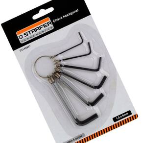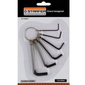 DESCRIÇÃO Utilizado para fixar ou soltar parafusos com sextavados internos. A Chave Allen Hexagonal Starfer 1,5 A 6mm Jogo com 06 Peças tem o formato em L que possibilita o efeito de alavanca durante o aperto ou desaperto de parafusos. Marca: Starfer DETALHES Fabricado em aço cromo vanádio, proporcionando resistência e durabilidade em aplicações mais severas. Acabamento fosfatizada/escurecida Possui argola para ser utilizado como chaveiro ESPECIFICAÇÕES Jogo de chaves allen possui 6 peças: 1,5mm 2mm 3mm 4mm 5mm 6mm CARACTERÍSTICAS Perfil do corpo em L, o que possibilita o efeito de alavanca durante o aperto ou desaperto de parafusos. Projetado para trabalhar com peças que tem cavidade interna hexagonalAS IMAGENS SÃO MERAMENTE ILUSTRATIVAS Ean: 7891638018146