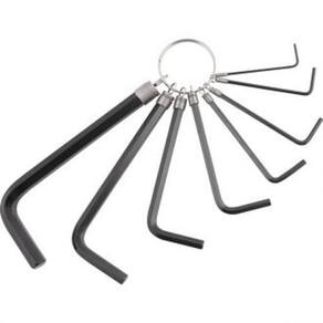 Conteúdo da Embalagem: 1 Jogo de chaves hexagonais, composto por uma argola com 8 peças, sendo: 1,5 mm, 2 mm, 2,5 mm, 3 mm, 4 mm, 5 mm, 6 mm e 8 mm Indicado para apertar e soltar parafusos com sextavado interno Possui tratamento fosfatizado preto, garantindo maior resistência à corrosão/oxidação.