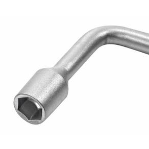 Forjada em aço cromo vanádio e temperada. Acabamento cromado. Após a fabricação, as chaves de roda são avaliadas nos quesitos torque e dureza, para atender aos requisitos da norma DIN 1711-1. Modelos e tamanhos dos mais variados para atender as muitas aplicações do setor de manutenção automotiva. As bocas das chaves de roda são verificadas com gabaritos calibrados, o que garante seu perfeito acoplamento nos parafusos. Afrouxar e apertar parafusos sextavados. As ferramentas são produzidas e testadas conforme normas específicas.