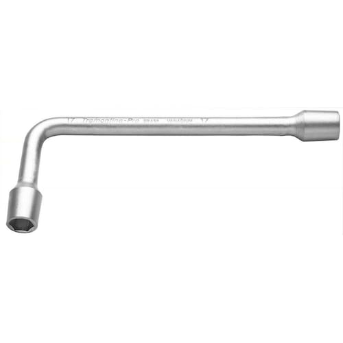 Com formato L e extremidades em formato de soquetes, as chaves bielas permitem apertar e afrouxar parafusos e porcas em locais de difícil acesso com mais agilidade. Com as chaves da Tramontina PRO, quem passa aperto é o parafuso. Orientações Forjada em aço cromo vanádio e temperada. Acabamento cromado.Após a fabricação, as chaves de roda são avaliadas nos quesitos torque e dureza, para atender aos requisitos da norma DIN 1711-1.Modelos e tamanhos dos mais variados para atender as muitas aplicações do setor de manutenção automotiva.As bocas das chaves de roda são verificadas com gabaritos calibrados, o que garante seu perfeito acoplamento nos parafusos. Afrouxar e apertar parafusos sextavados. As ferramentas são produzidas e testadas conforme normas específicas. Observações Sempre utilizar óculos de segurança para proteger os olhos.Utilizar luvas para proteger as mãos.Sempre utilizar uma chave de bitola correta para cada parafuso ou porca para que não haja folga, pois isso danifica a chave e o parafuso também.Sempre usar a chave perpendicular ao eixo do parafuso e/ou porca. Isto aumenta a vida útil da ferramenta e torna a operação mais segura.Não usar tubos ou outras barras extensoras para obter mais torque. Ao aumentar a distância da aplicação da força aumenta-se o torque que pode ser fornecido ao parafuso, mas também se corre o risco de quebrar a chave.Respeitar o torque estabelecido por norma para cada tamanho de chaves.Não golpear as chaves, a não ser que sejam projetadas para este fim.Não alterar a forma original das chaves. Características Gerais EAN13 7891114027464 DUN14 17891114027461 NCM 8204.11.00 Peso Líquido 0,7000 kg. Peso Bruto 0,7000 kg. Metragem 0,001224 m³. Dimensões Embalagem (Compr. X Larg. X Alt.) 340x 120x 30 mm. Dimensões Produto (Compr. X Larg. X Alt.) 254x 100x 19 mm. Dimensão Extra A 100,0 mm. Dimensão Extra B 254,0 mm. Dimensão Extra C 27,0 mm. Dimensão Extra D 19,0 mm. Dimensão Extra E 15,9 mm. Tamanho 19 mm