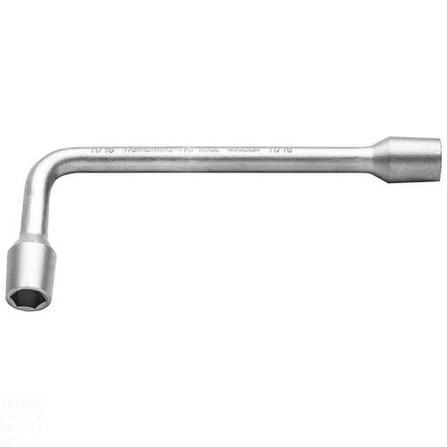 Com formato L e extremidades em formato de soquetes, as chaves bielas permitem apertar e afrouxar parafusos e porcas em locais de difícil acesso com mais agilidade. Com as chaves da Tramontina PRO, quem passa aperto é o parafuso. Orientações Forjada em aço cromo vanádio e temperada. Acabamento cromado.Após a fabricação, as chaves de roda são avaliadas nos quesitos torque e dureza, para atender aos requisitos da norma DIN 1711-1.Modelos e tamanhos dos mais variados para atender as muitas aplicações do setor de manutenção automotiva.As bocas das chaves de roda são verificadas com gabaritos calibrados, o que garante seu perfeito acoplamento nos parafusos. Afrouxar e apertar parafusos sextavados. As ferramentas são produzidas e testadas conforme normas específicas. Características Gerais EAN13 7891114071726 DUN14 17891114071723 NCM 8204.11.00 Peso Líquido 0,3200 kg. Peso Bruto 0,5200 kg. Metragem 0,001400 m³. Dimensões Embalagem (Compr. X Larg. X Alt.) 400x 100x 35 mm. Dimensões Produto (Compr. X Larg. X Alt.) 254x 100x 23 mm. Dimensão Extra A 100,0 mm. Dimensão Extra B 254,0 mm. Dimensão Extra C 23,0 mm. Dimensão Extra D 15,9 mm. Dimensão Extra E 14,3 mm. Observações Sempre utilizar óculos de segurança para proteger os olhos.Utilizar luvas para proteger as mãos.Sempre utilizar uma chave de bitola correta para cada parafuso ou porca para que não haja folga, pois isso danifica a chave e o parafuso também.Sempre usar a chave perpendicular ao eixo do parafuso e/ou porca. Isto aumenta a vida útil da ferramenta e torna a operação mais segura.Não usar tubos ou outras barras extensoras para obter mais torque. Ao aumentar a distância da aplicação da força aumenta-se o torque que pode ser fornecido ao parafuso, mas também se corre o risco de quebrar a chave.Respeitar o torque estabelecido por norma para cada tamanho de chaves.Não golpear as chaves, a não ser que sejam projetadas para este fim.Não alterar a forma original das chaves.