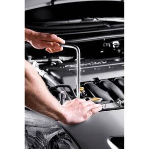 Com formato L e extremidades em formato de soquetes, as chaves bielas permitem apertar e afrouxar parafusos e porcas em locais de difícil acesso com mais agilidade. Com as chaves da Tramontina PRO, quem passa aperto é o parafuso. Orientações Forjada em aço cromo vanádio e temperada. Acabamento cromado.Após a fabricação, as chaves de roda são avaliadas nos quesitos torque e dureza, para atender aos requisitos da norma DIN 1711-1.Modelos e tamanhos dos mais variados para atender as muitas aplicações do setor de manutenção automotiva.As bocas das chaves de roda são verificadas com gabaritos calibrados, o que garante seu perfeito acoplamento nos parafusos. Afrouxar e apertar parafusos sextavados. As ferramentas são produzidas e testadas conforme normas específicas. Observações Sempre utilizar óculos de segurança para proteger os olhos.Utilizar luvas para proteger as mãos.Sempre utilizar uma chave de bitola correta para cada parafuso ou porca para que não haja folga, pois isso danifica a chave e o parafuso também.Sempre usar a chave perpendicular ao eixo do parafuso e/ou porca. Isto aumenta a vida útil da ferramenta e torna a operação mais segura.Não usar tubos ou outras barras extensoras para obter mais torque. Ao aumentar a distância da aplicação da força aumenta-se o torque que pode ser fornecido ao parafuso, mas também se corre o risco de quebrar a chave.Respeitar o torque estabelecido por norma para cada tamanho de chaves.Não golpear as chaves, a não ser que sejam projetadas para este fim.Não alterar a forma original das chaves. Características Gerais EAN13 7891114071719 DUN14 17891114071716 NCM 8204.11.00 Peso Líquido 0,2910 kg. Peso Bruto 0,4910 kg. Metragem 0,001400 m³. Dimensões Embalagem (Compr. X Larg. X Alt.) 400x 100x 35 mm. Dimensões Produto (Compr. X Larg. X Alt.) 254x 100x 14 mm. Dimensão Extra A 100,0 mm. Dimensão Extra B 254,0 mm. Dimensão Extra C 21,5 mm. Dimensão Extra D 14,3 mm. Dimensão Extra E 14,3 mm. Tamanho 9/16"
