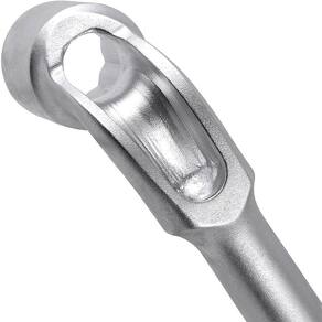Produzida em aço cromo vanádio, proporcionando maior resistência e durabilidade. Possui furo passante, permitindo a saída de parafusos com comprimentos maiores.