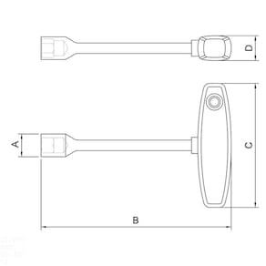 A chave cabo T possui o cabo de plástico injetado no braço curto da chave para ampliar a aplicação de torque.