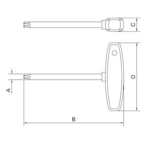 A chave cabo T possui o cabo de plástico injetado no braço curto da chave para ampliar a aplicação de torque.