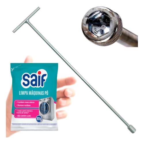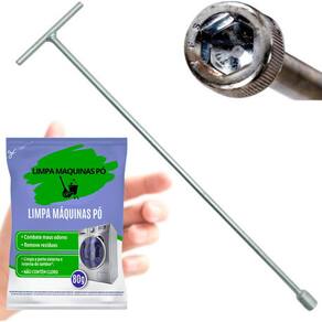 KIT PARA LIMPEZA DE LAVADORAS DE ROUPAS, PÓ LIMPADOR INTERNO + CHAVE 10MM LONGA 62CM