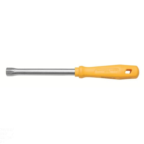 A Chave Canhão 11 mm Tramontina com Haste Tubular é o item que você precisa para os trabalhos mais difíceis. Produzida em aço especial com acabamento cromado e haste tubular, vai te ajudar a alcançar parafusos e porcas de perfil sextavado em locais de difícil acesso. Com ela, você terá uma ferramenta de manuseio firme e confortável, graças ao cabo de polipropileno injetado. Um item resistente e durável, indispensável para seu kit de ferramentas! Orientações Haste em aço especial temperada.Acabamento cromado.Cabo injetado.As hastes das chaves de fenda são testadas em máquina de ensaio específica, para verificar o perfeito balanço entre resistência mecânica e dureza.Os dimensionais das pontas são verificados com gabaritos-padrão calibrados e certificados.Apertar ou afrouxar porcas e parafusos.Adequada para lugares de difícil acesso. As ferramentas são produzidas e testadas conforme normas específicas. Características Gerais EAN13 7891114090314 DUN14 17891114090311 NCM 8204.11.00 Peso Líquido 0,1200 kg. Peso Bruto 0,1200 kg. Metragem 0,000174 m³. Dimensões Embalagem (Compr. X Larg. X Alt.) 145x 40x 30 mm. Dimensões Produto (Compr. X Larg. X Alt.) 236x 29x 29 mm. Cor 1 FFD200 Hexa Dimensão Extra A 236,0 mm. Dimensão Extra B 28,6 mm. Dimensão Extra C 125,0 mm. Dimensão Extra D 16,0 mm. Dimensão Extra E 12,7 mm. Dimensão Extra F 9,7 mm. Observações Use óculos, luvas e outros equipamentos de proteção de acordo com a tarefa a ser executada. Utilize chaves de fenda isoladas, identificadas pela marcação 1.000 V, quando for necessário trabalhar em locais com corrente elétrica. Importante: nestes casos, inspecione a integridade da isolação elétrica, e, se aparecerem trincas na isolação, suspenda o uso imediatamente. Utilize chaves com ponta adequada para cada tipo de fenda, para realizar a tarefa de forma mais rápida e segura. Respeite o torque estabelecido por norma para cada bitola. Não utilize as chaves de fenda como formão ou alavanca. Não altere as dimensões originais da ponta para obter outro perfil. Armazene em local limpo e seco.