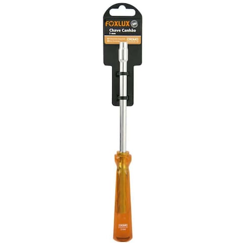 Comprimento da chave: 25 cm Descrição A Chave Canhão da Foxlux é feita em cromo vanádio e é ideal para apertar porcas e parafusos em difícil acesso. Possui cabo reforçado em PVC rígido transparente, injetado diretamente sobre a lâmina e embalagem individual perfeita para exposição do produto.