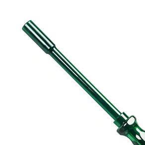 Haste em aço carbono. Soquete laminado em aço cromo vanádio. Acabamento cromado. Ponta fosfatizada. Cabo em PVC verde transparente. Din 3125. Isolação de 1000 V CA. Produto em conformidade com a NBR9699 e NR10. Tamanho: 9 mm.