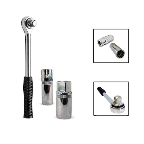Especificações: - Marca: EDA; - Modelo: 0AT, 0AS e 3EX; - Material: Aço Cromo Vanádio nos Soquetes e Cabo Emborrachado na Catraca; - Catraca: Entrada 1/2 Reversível; - Quantidades: 45 Dentes; - Aplicação: Aperto e Desaperto; - Soquetes: 16mm Entrada de 1/2 e Soquete de 21mm Entrada de 1/2 Imantados Magnéticos.