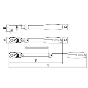 Possui sistema de articulação flexível da chave catraca, com trava para posição desejável