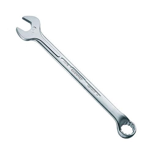 Aço Gedore-Vanadium. Acabamento niquelado e cromado. Chave combinada com um lado boca e outro Unit Drive com as mesmas medidas. A Unit Drive proporciona uma distribuição uniforme da força aplicada na parte central do sextavado, não havendo deformação dos cantos das porcas e parafusos. Inclinação em relação ao corpo: boca 15º e Unit Drive 10º. Parede fina. Chave combinada bitolas: 1/4" à 1.1/4", são encarteladas para autoserviço.
