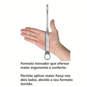 Parede fina.Cabeça usinada.Pescoço longo.Acabamento cromado.Abertura da boca calibrada.DIN 3113ISO 7738.As chaves de aperto são produzidas em aço ligado com cromo vanádio (Cr-V), e apos submetidas a testes rigorosos de torque para atender a norma DIN 1711-1.O teste de dureza é realizado em vários pontos para assegurar a resistência ao desgaste da chave durante o ininterrupto.Afrouxar e apertar parafs e porcas sextavadas e quadradas.Devido à forma ergonômica reduz a fadiga do usuário em apertos finais.Seu formato inovador permite afrouxar ou apertar parafs ou porcas com maior conforto, pois a parte que tem contato com as mãos será sempre plana.Facilita a remoção de parafs gastos pela possibilidade de aplicação de maior torque.As ferramentas são produzidas e testadas conforme normas específicas.