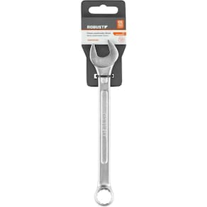 Destaques Comercial: Chave combinada fixa/estrela em aço especial ROBUST, niquelada e cromada, ideal para locais de difícil acesso e alta durabilidade.