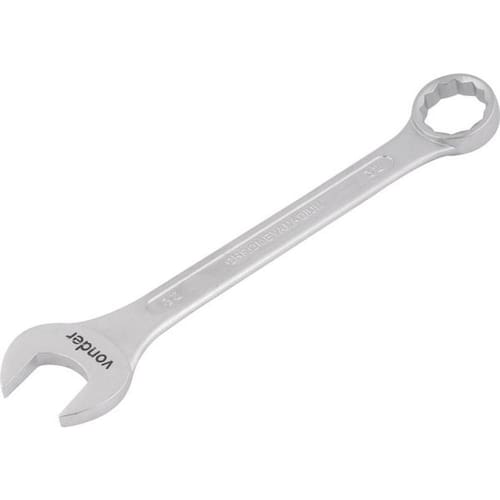 Chave Combinada 32mm Cromo Vanádio Fosco Cartela Vonder Aplicações e dicas de uso Produzida em aço cromo vanádio, proporcionando melhor qualidade e durabilidade. Possui acabamento cromado fosco que confere maior resistência à oxidação/corrosão. Chave combinada, sendo um lado fixa e o outro estrela, possibilitando aplicações em locais de difícil acesso. Indicada para apertar e soltar porcas e parafusos sextavados. Nunca utilizar prolongadores sobre a chave, pois isso aumentará o torque aplicado e diminuirá a vida útil da ferramenta. Uso industrial. Indicada para apertar e soltar porcas e parafusos sextavados. Nunca utilizar prolongadores sobre a chave, pois isso aumentará o torque aplicado e diminuirá a vida útil da ferramenta. Uso industrial. Características Técnicas