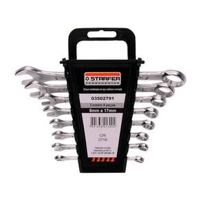 Descrição chave combinada boca estrela 6 a 17mm com 8 pçs starfer jogo, também conhecida como chave de boca combinada, a chave combinada se aplica em porcas e parafusos de cabeça sextavada ou quadrada. Extremamente prática, ela possui uma ponta de boca fixa, e a outra ponta uma boca estrela. Ferramentas manuais são essenciais para ter sempre à mão, em casa ou no carro. Compactos e leves, esses acessórios fazem parte do kit básico de reparos mecânicos e residenciais, ajudando em qualquer emergência. Detalhes 01 jogo de chave combinada cromo vanádio 6- 17 mm starfer tamanho das chaves: 6, 7, 8, 9, 10, 11, 14, 17mm especificações proporciona uma distribuição uniforme da força aplicada na parte central do sextavado, não havendo deformação dos cantos das porcas e parafusos características conta com um lado fixo e outro estrela de medidas iguais.As imagens são meramente ilustrativas Marca: Não Informado