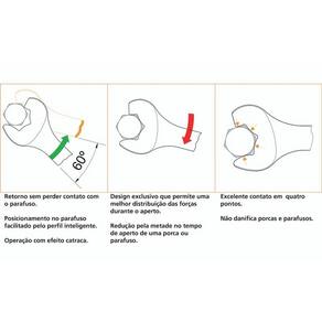 Agilidade é com a chave combinada Superdrive da Tramontina PRO. Seu design exclusivo permite apertar parafusos e porcas sem precisar tirar a chave do parafuso ou porca a cada movimento. O mesmo acontece se inverter a chave para afrouxar. O lado estrela possui mecanismo com catraca, que permite realizar trabalhos com mais agilidade do que uma chave estrela comum. Além disso, sua construção robusta permite realizar apertos finais. Quem é PRO usa. Orientações Cabeça usinada. Acabamento cromado. Catraca fosfatizada. Abertura da boca calibrada. 60 dentes. As chaves de aperto são produzidas em aço ligado com cromo vanádio (Cr-V), e após submetidas a testes rigorosos de torque para atender a norma DIN 1711-1.O teste de dureza é realizado em vários pontos para assegurar a resistência ao desgaste da chave durante o uso ininterrupto. Afrouxar e apertar parafusos e porcas sextavadas e quadradas. Sua forma construtiva permite apertar parafusos e porcas sem precisar tirar a chave para encaixá-la a cada movimento, o mesmo acontece se inverter a chave para afrouxar. Lado estrela possui mecanismo com catraca que permite realizar trabalhos com mais agilidade e facilidade do que uma chave estrela comum. Catraca com construção robusta que permite dar apertos finais conforme DIN-ISO 1711-1.As ferramentas são produzidas e testadas conforme normas específicas. Observações Use óculos, luvas e outros equipamentos de proteção individual (EPIs) de acordo com a tarefa a ser executada. Não golpeie as chaves, a não ser que sejam projetadas para este fim. Sempre utilize uma chave de bitola correta para cada parafuso ou porca para que não haja folga, pois isso danifica a chave e o parafuso. Mantenha a chave limpa para um melhor agarre, pois usá-la suja com graxa ou óleo pode causar acidentes. Não use tubos ou extensões para obter mais torque. Não altere a forma original das chaves. Respeite o torque estabelecido por norma para cada tamanho de chaves. Use a chave perpendicular ao eixo do parafuso e/ou porca. Isto aumenta a vida útil da ferramenta e torna a operação mais segura. Armazene em local limpo e seco. Características Gerais EAN13 7891114125955 DUN14 17891114125952 NCM 8204.11.00 Peso Líquido 0,1850 kg. Peso Bruto 0,1850 kg. Metragem 0,000280 m³. Dimensões Embalagem (Compr. X Larg. X Alt.) 280x 50x 20 mm. Dimensões Produto (Compr. X Larg. X Alt.) 208x 33x 10 mm. Dimensão Extra A 7,2 mm. Dimensão Extra B 10,3 mm. Dimensão Extra C 31,6 mm. Dimensão Extra D 225,0 mm. Dimensão Extra E 35,1 mm.