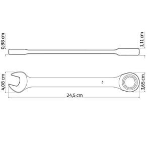 Forjada em aço cromo vanádio e temperada. Catraca com 90 dentes. Cabeça usinada. Acabamento cromado. Catraca fosfatizada. DIN 3113. Tamanho: 20 mm