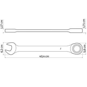 Forjada em aço cromo vanádio e temperada. Catraca com 90 dentes. Cabeça usinada. Acabamento cromado. Catraca fosfatizada. DIN 3113. Tamanho: 30 mm