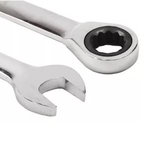 Chave combinada com catraca 13mm - Beltools Descrição: Produzida em aço cromo vanádio, proporcionando maior resistência e durabilidade. Conta com acabamento cromado fosco que oferece ótimo acabamento e maior proteção contra oxidação/corrosão. Possui sistema de catraca que permite a realização de trabalhos com mais agilidade e facilidade em locais de difícil acesso, sem a necessidade de retirar a chave para novo movimento. Indicação: Indicada para apertar e soltar porcas e parafusos sextavados. Nunca utilizar prolongadores sobre a chave, pois isso aumentará o torque aplicado e diminuirá a vida útil da ferramenta. Não utilizar o lado com catraca para o aperto final. Medida: 13mm. Comprimento: 180mm. Material do corpo: Aço cromo vanádio. Acabamento: Cromado fosco. Tipo de catraca: Simples.